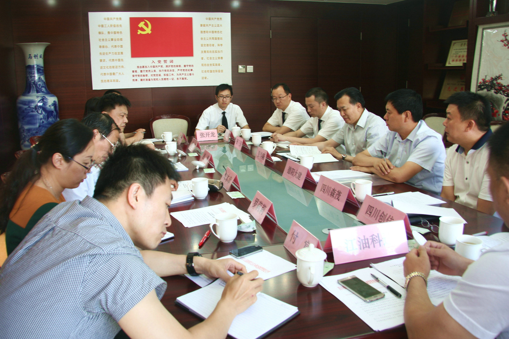 调研会上,四川省德阳大建劳务开发有限责任公司、四川省森茂建筑劳务有限公司、四川创佳建筑劳务有限责任公司、江油市科达建筑劳务有限责任公司的企业负责人,对企业在实名制管理、劳务用工方式选择、施工现场管控、班组管理和恶意讨薪事件处理等方面情况作了交流发言。