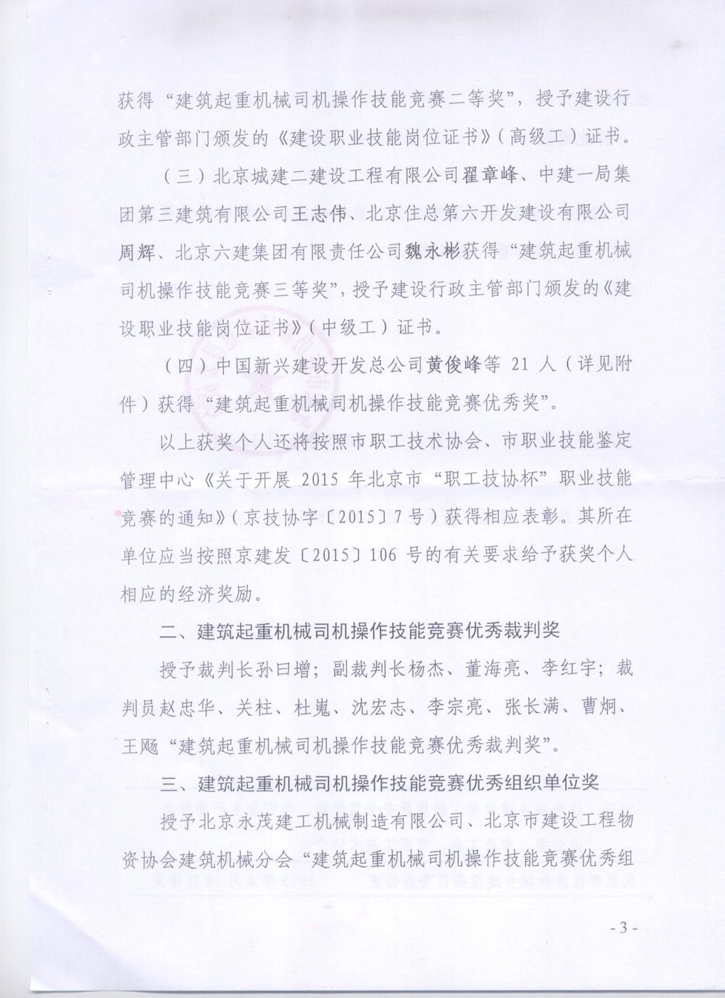 关于2015年北京市建筑起重机械司机