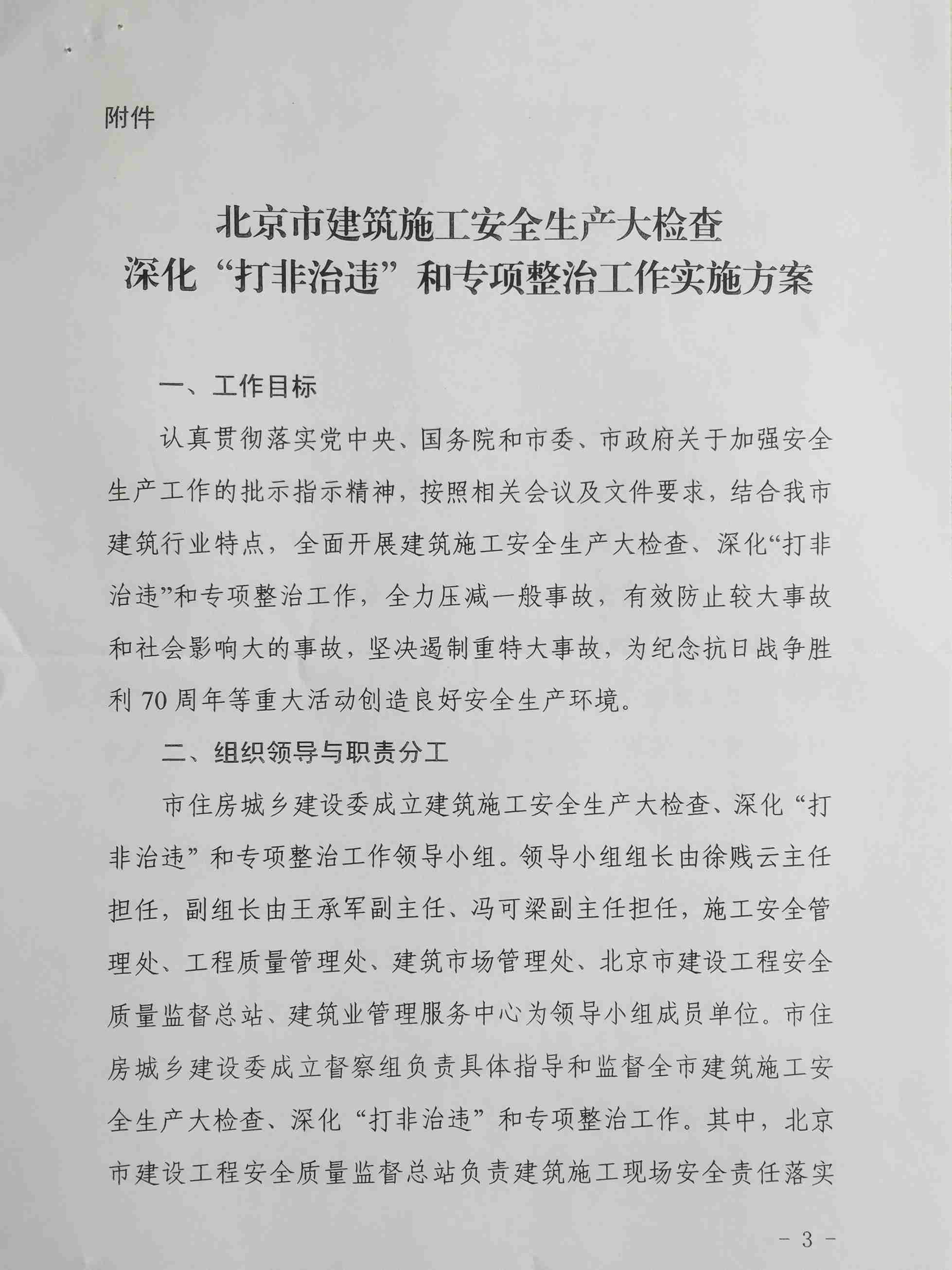《北京市建筑施工安全生产大检查深化“打非