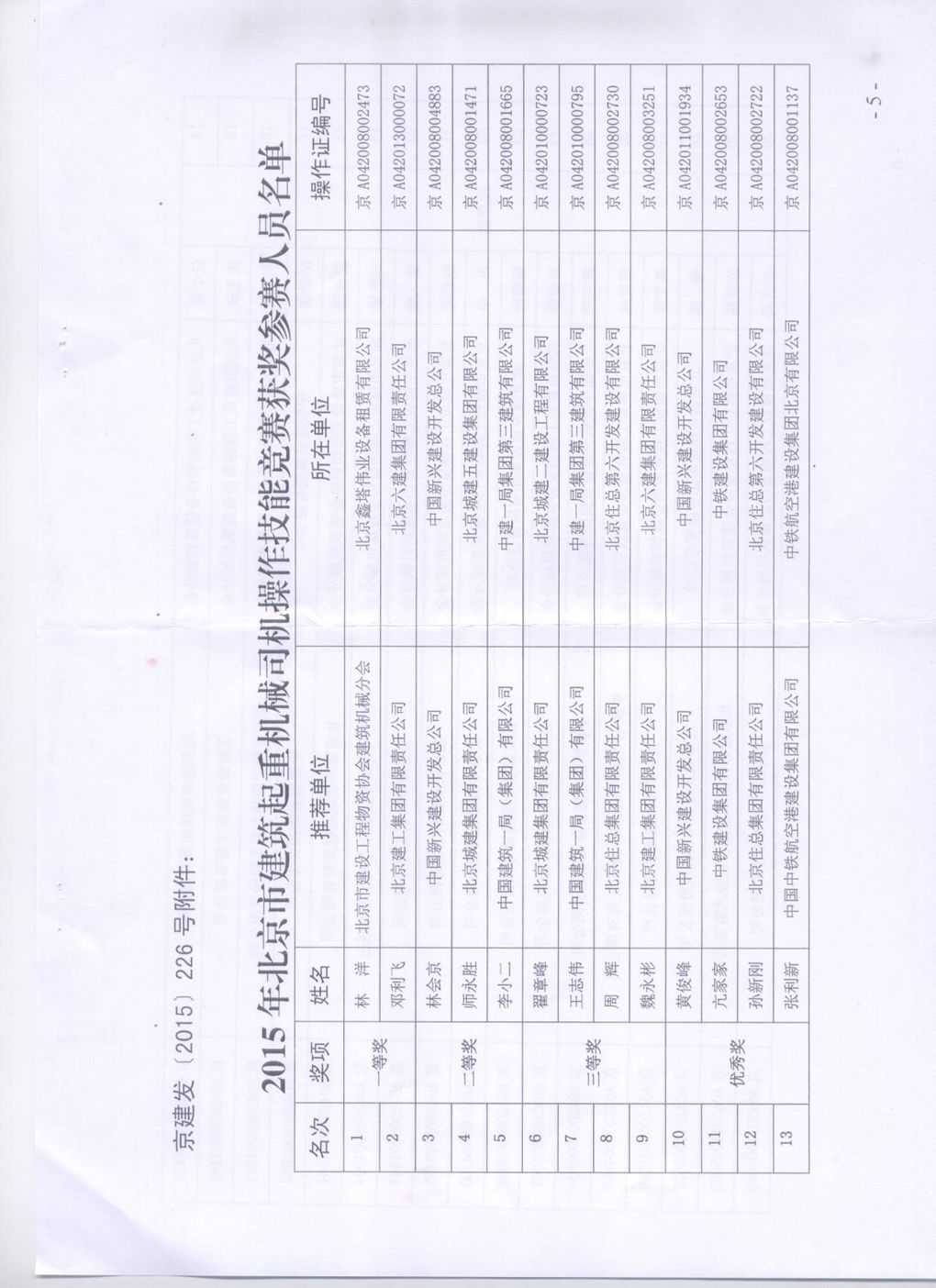 关于2015年北京市建筑起重机械司机
