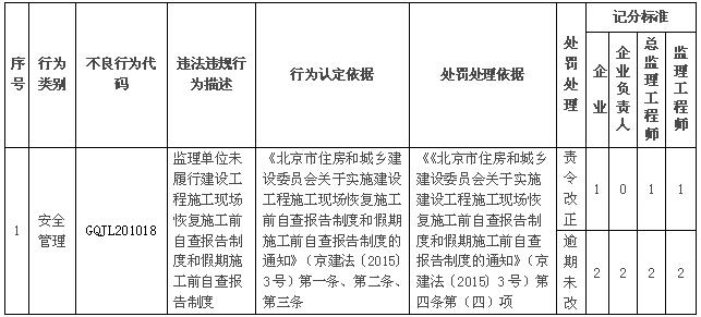3.加入到《北京市工程监理企业及人员违法违规行为记分标准》的条款
