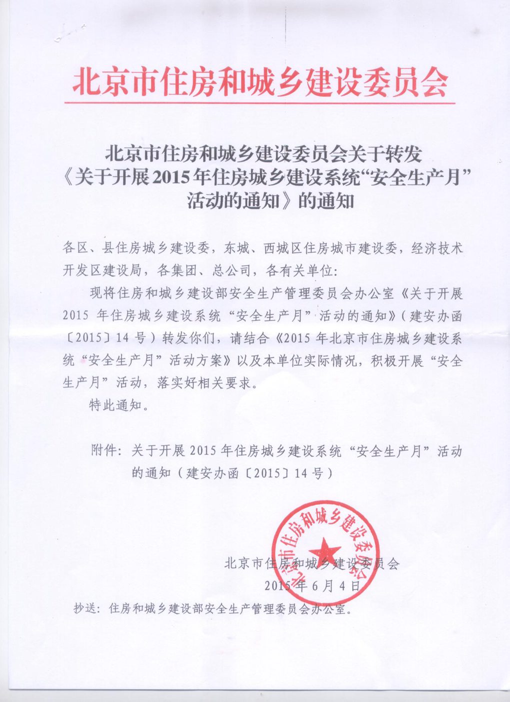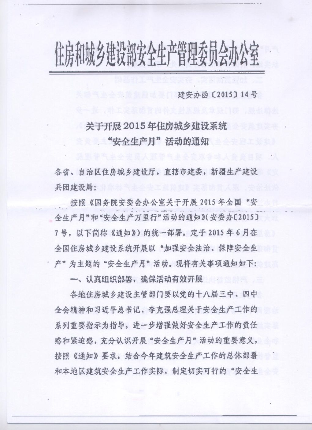 《关于开展2015年住房城乡建设系统“安全生产月”